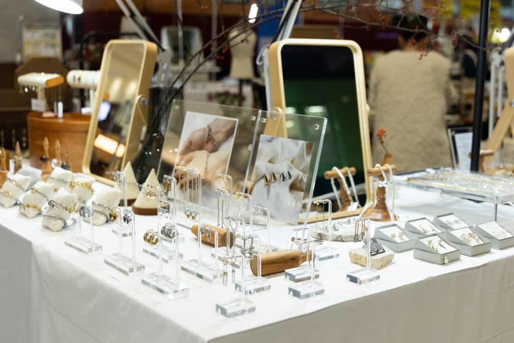 様々な素材を使ってデザイン製作したアクセサリーなどの販売です。