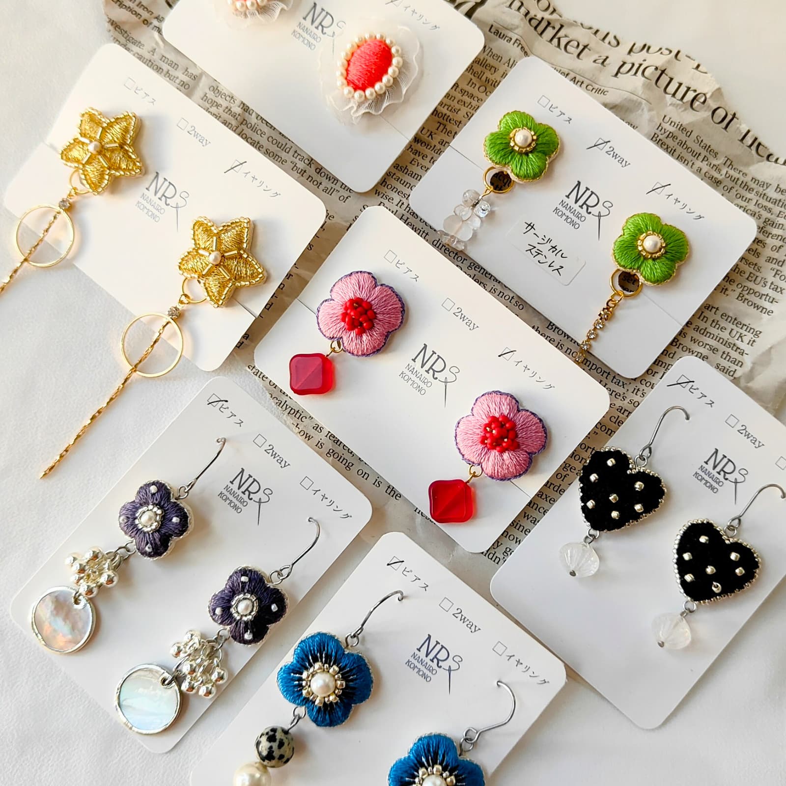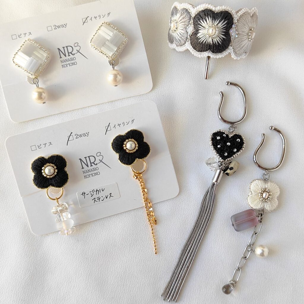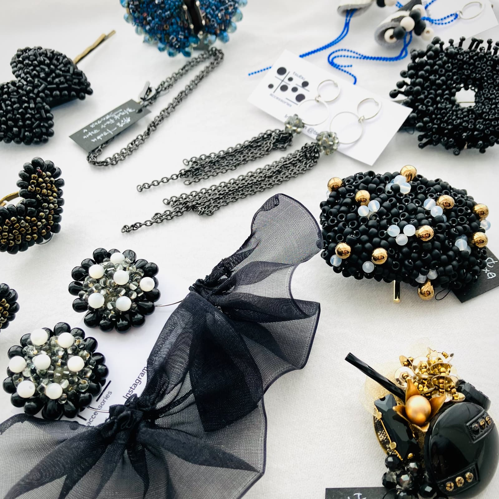 シックなカラーの手縫いアクセサリー&ヘアアクセサリー