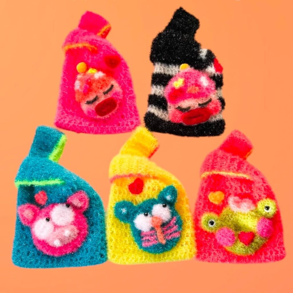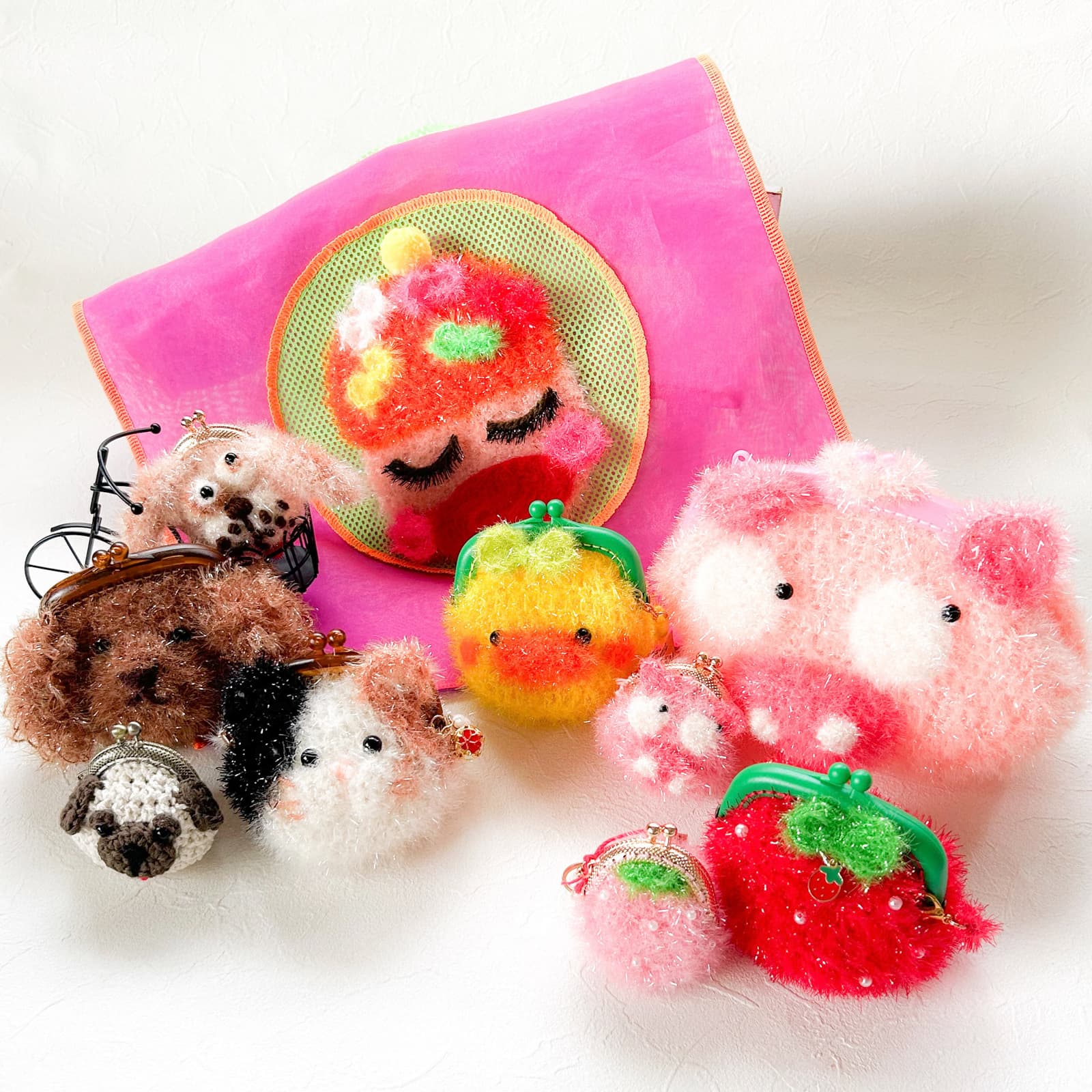 色々なドールやぬいぐるみなどの革小物やかぎ編み帽子を揃えてます
