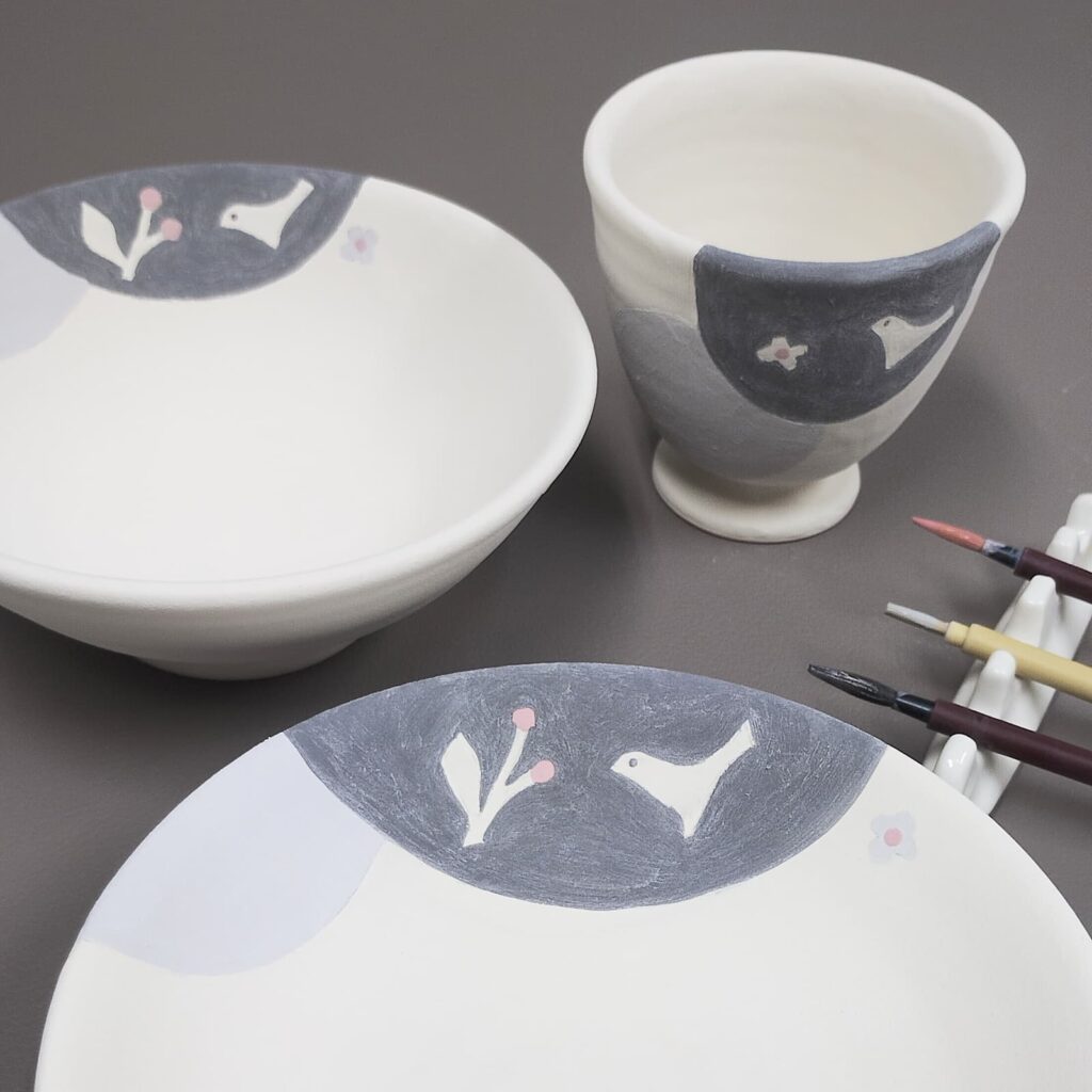 気持ちが少し明るくなるような陶器のうつわ。形も絵も手仕事です。