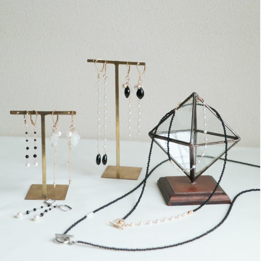 シンプルの中にも個性がひかるアクセサリー。金属アレルギーにも対応。