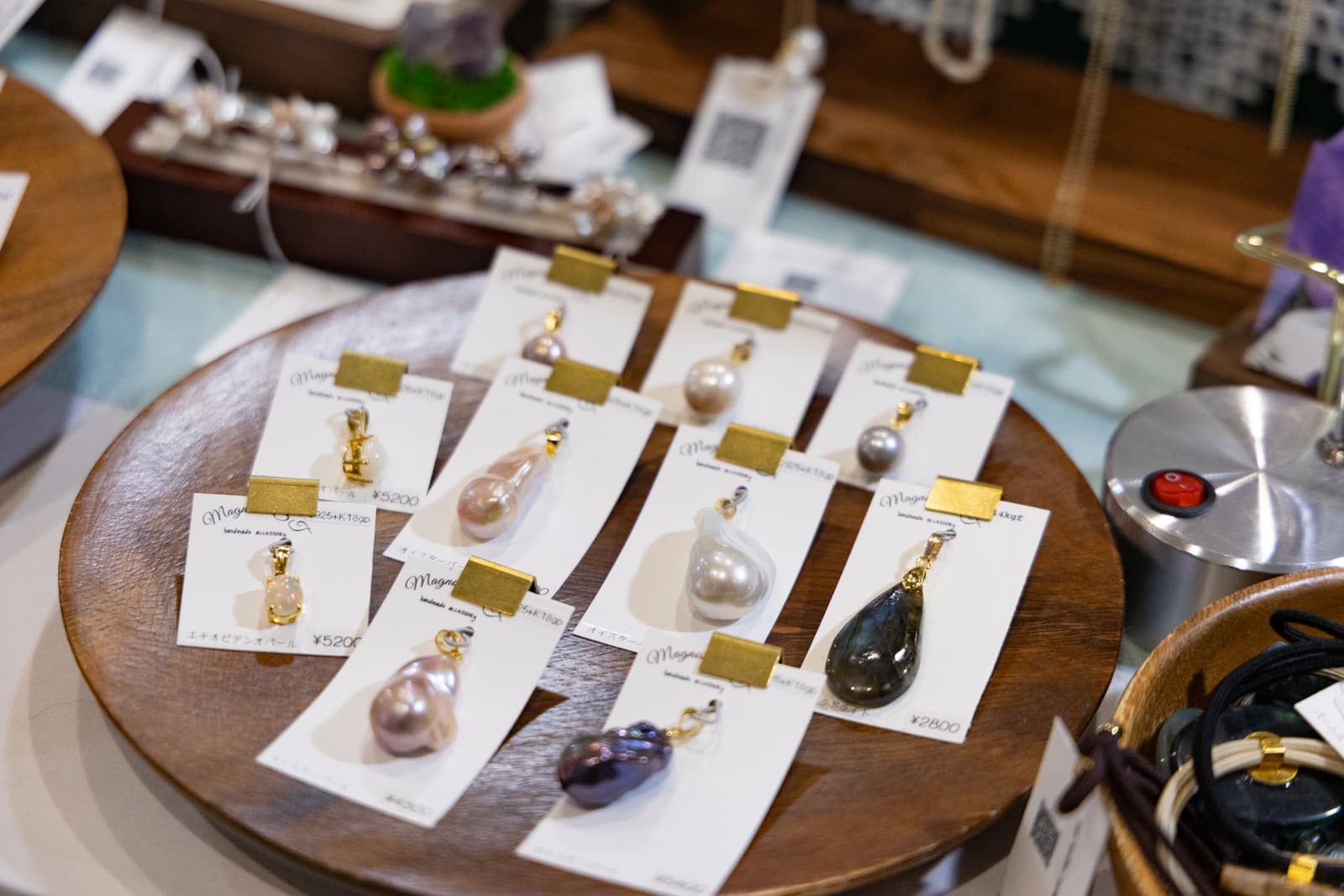 天然石や天然パール、珍しいガラスを使ったアクセサリーを制作してるお店です。