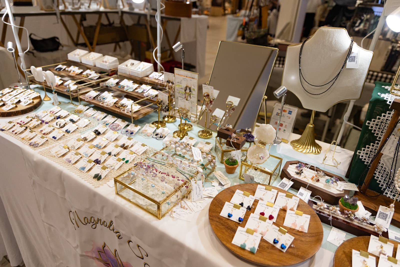 高槻市に店舗を構えるハンドメイドのセレクトショップ「入りにくい小さい雑貨屋 jumblesoup」です。アクセサリーやポーチ、バッグなどの布小物、スマホショルダーや帽子などをお取り扱いしています。