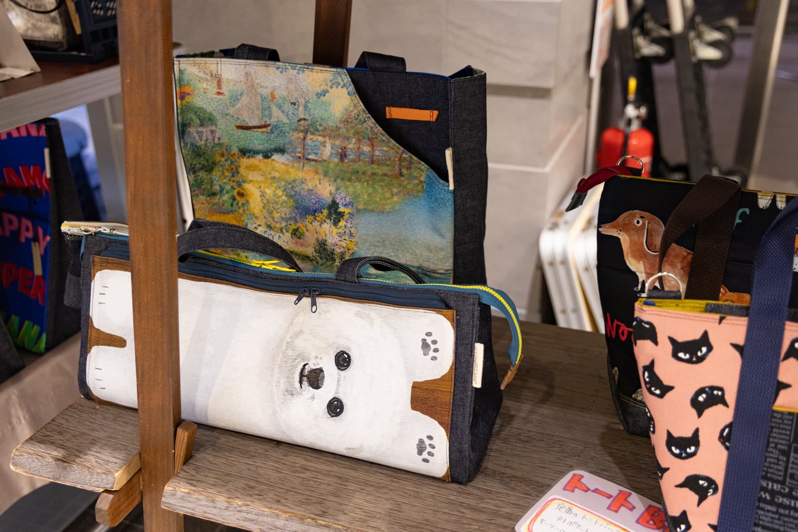 デニムや頒布、色んな柄の生地を組み合わせてバッグや小物を手作りしています。