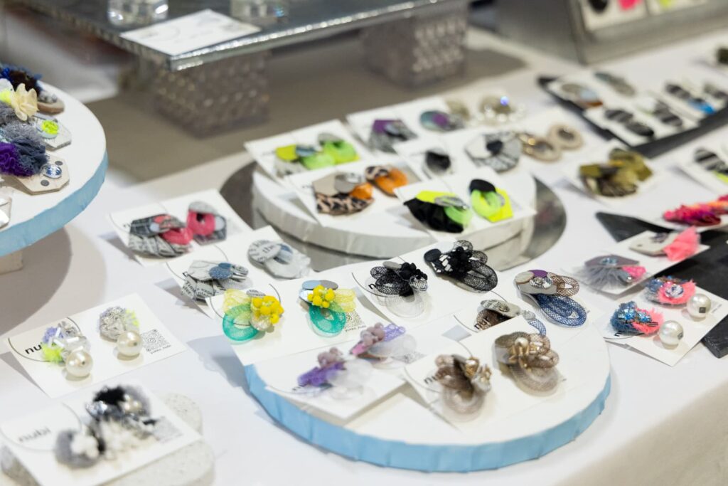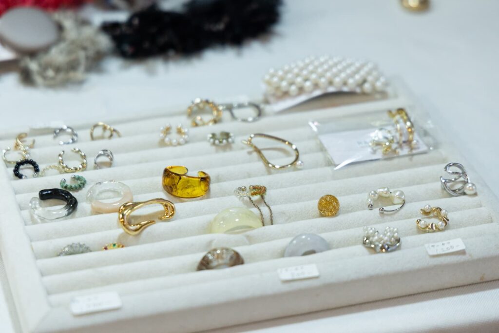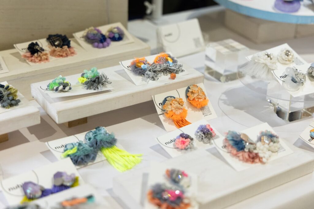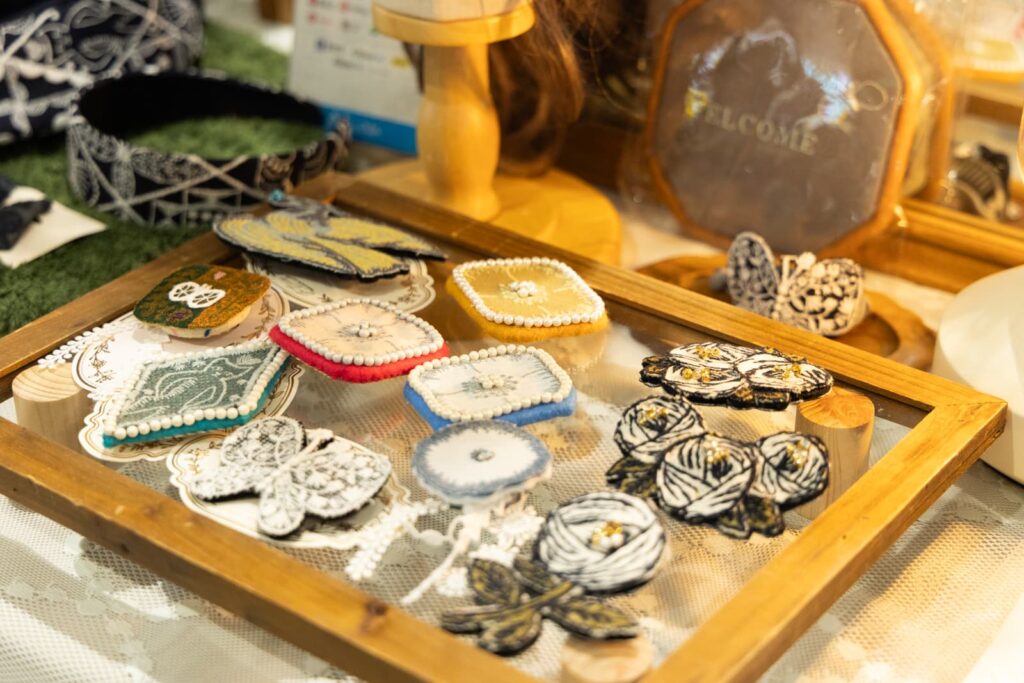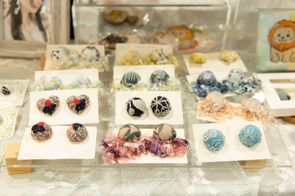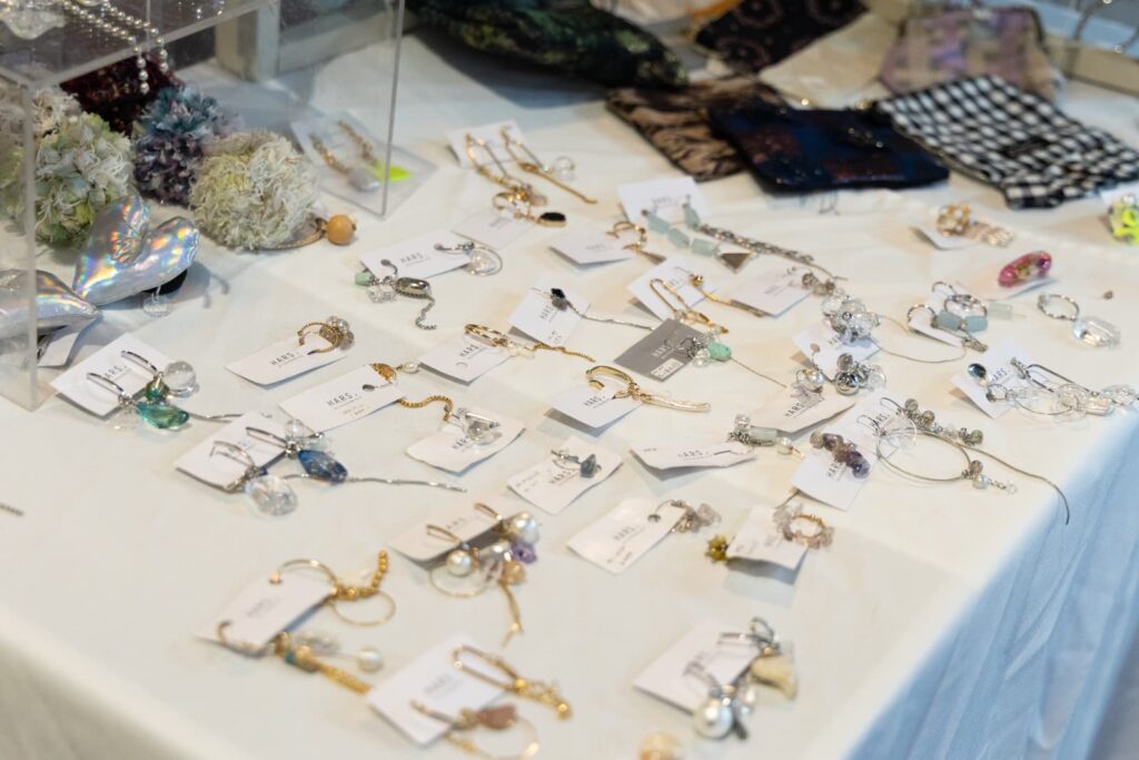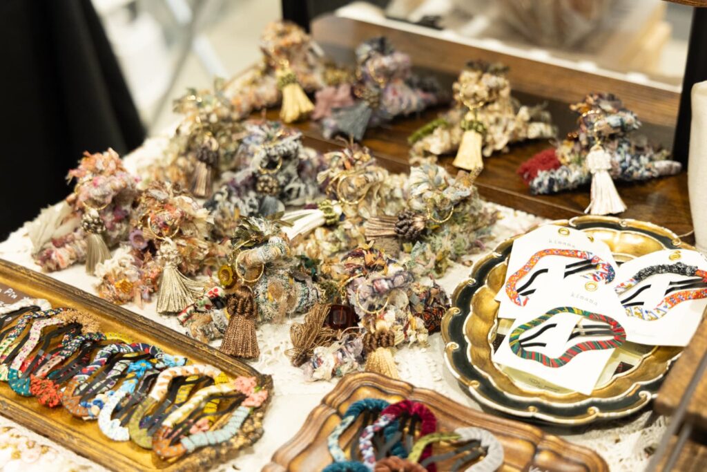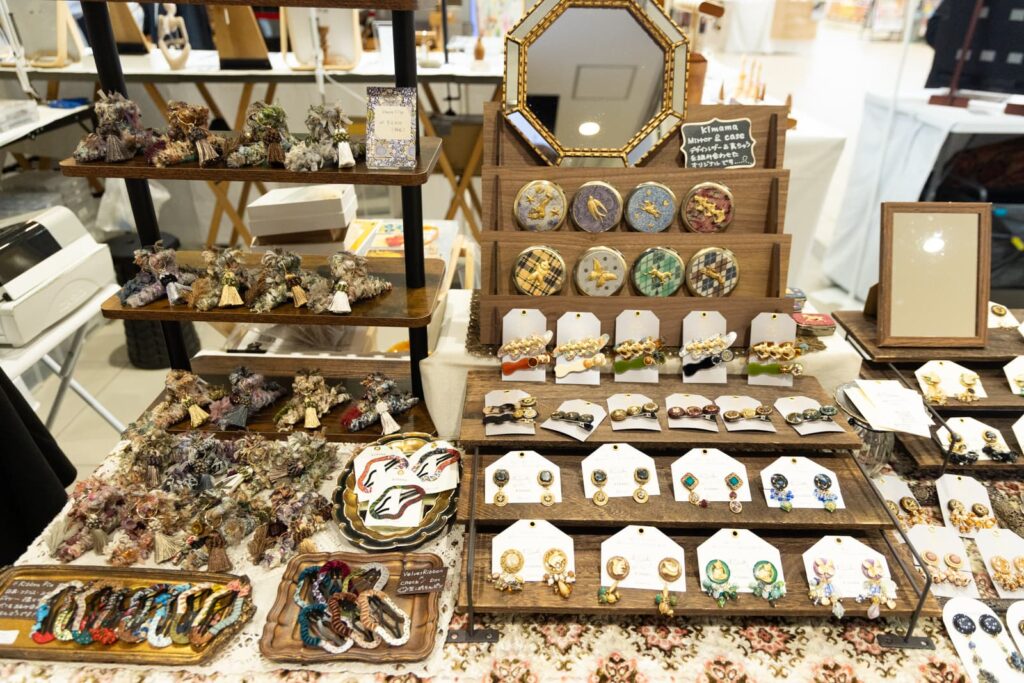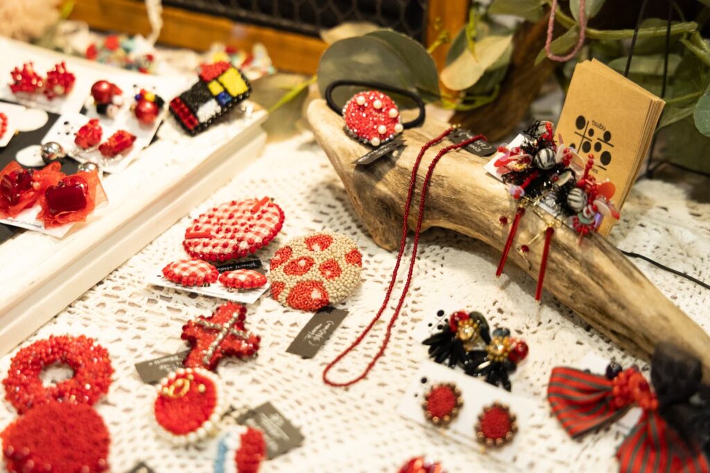 ビジューやフラワー等華やかなパーツを使って作成したハンドメイドアクセサリー