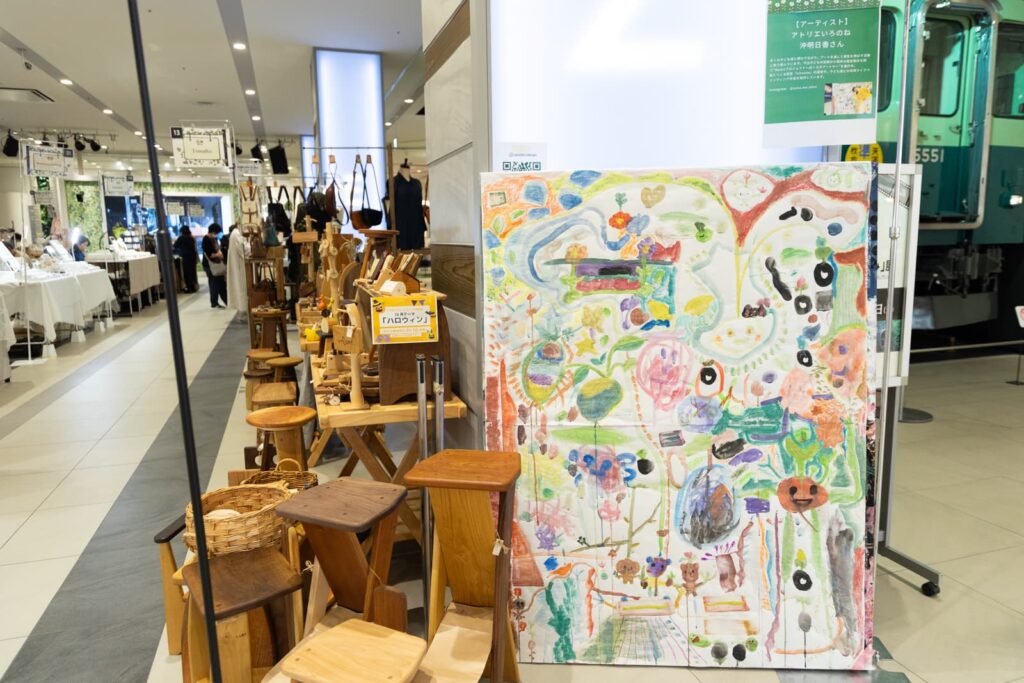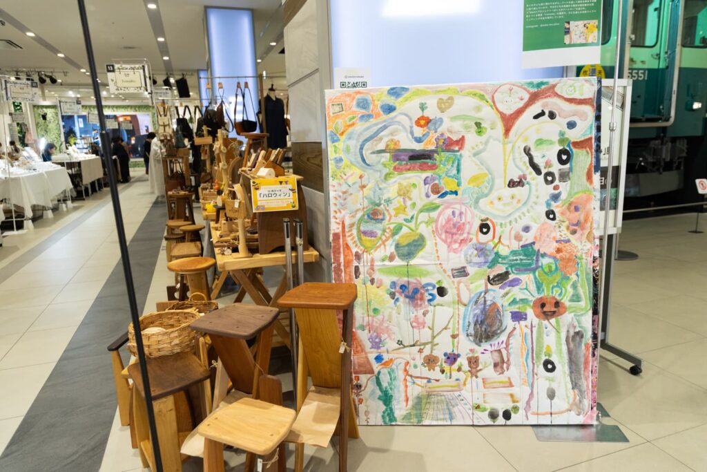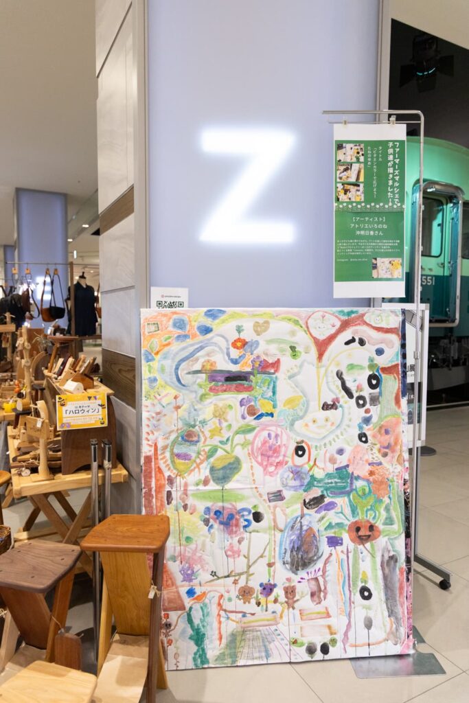 10/5に開催したファーマーズマルシェの際に、ワークショップで子供たちが描いてくれた絵画も展示しました。