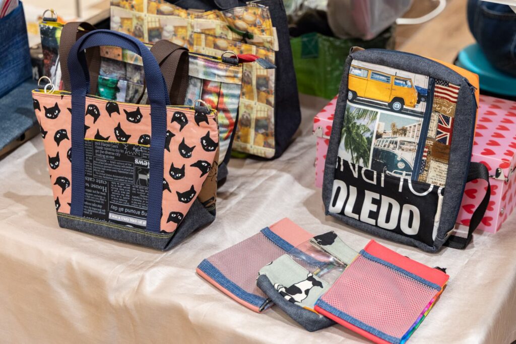 お気に入りの布とデニムや頒布を組み合わせて、普段使いのバッグや小物を手作りしています。