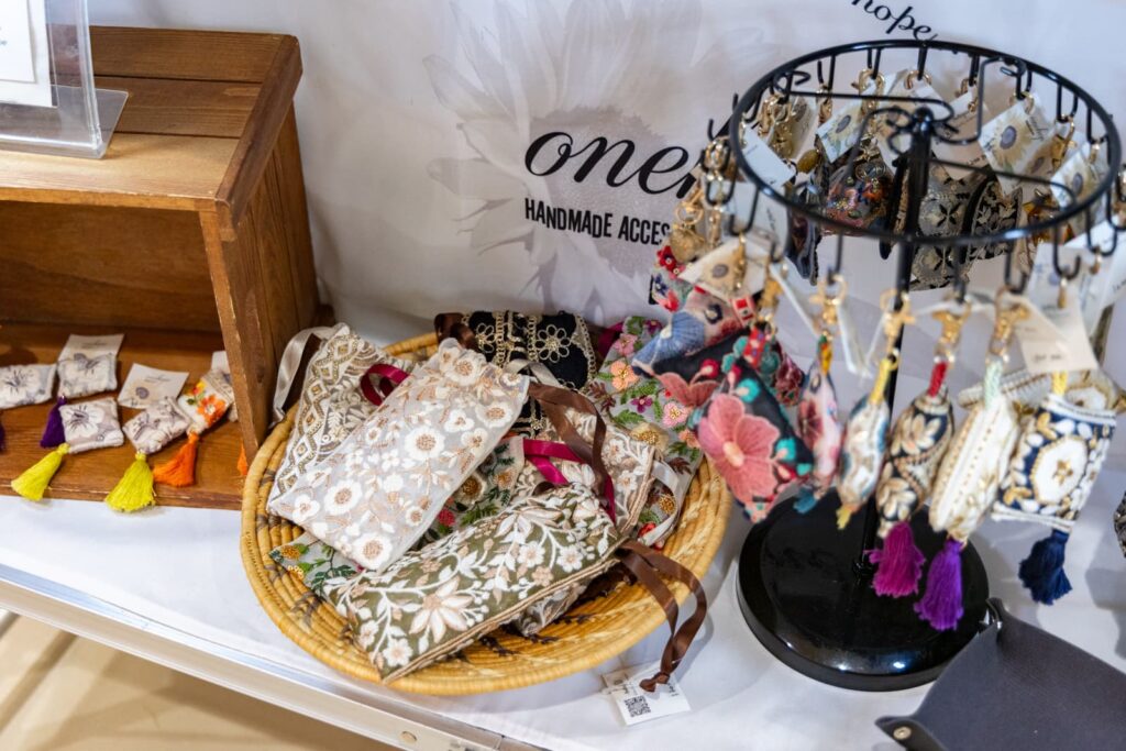 「オトナがときめく」をコンセプトに、ビーズや刺繍のアクセサリーや、オリジナルバッグなどをひとつひとつ、心をこめて丁寧に作っています。