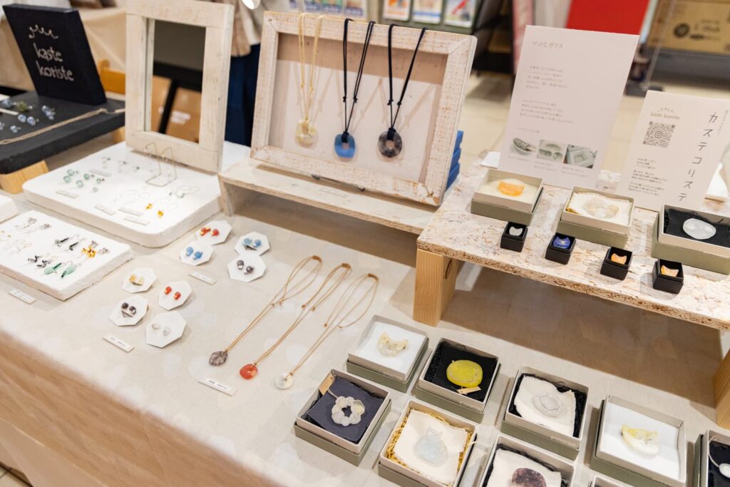 様々な素材を使ってデザイン製作したアクセサリーなどの販売です。
