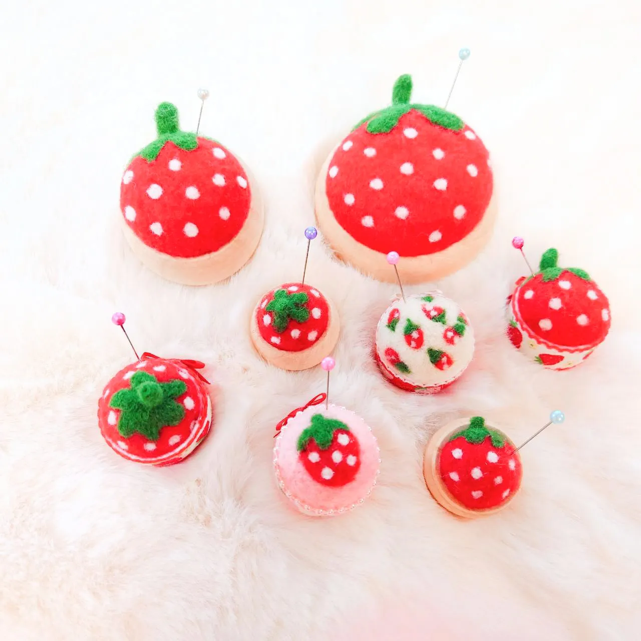 羊毛フェルトを使用した針山。犬、動物、花のモチーフの小物雑貨を作っています。キッズアクセサリー、キッズワークもあります。